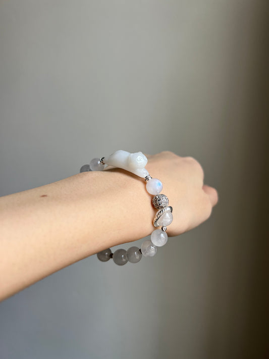 "playtime" white jadeite cat bracelet #04