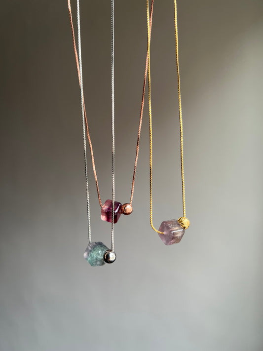 “cosmic order” fluorite + meteorite necklace