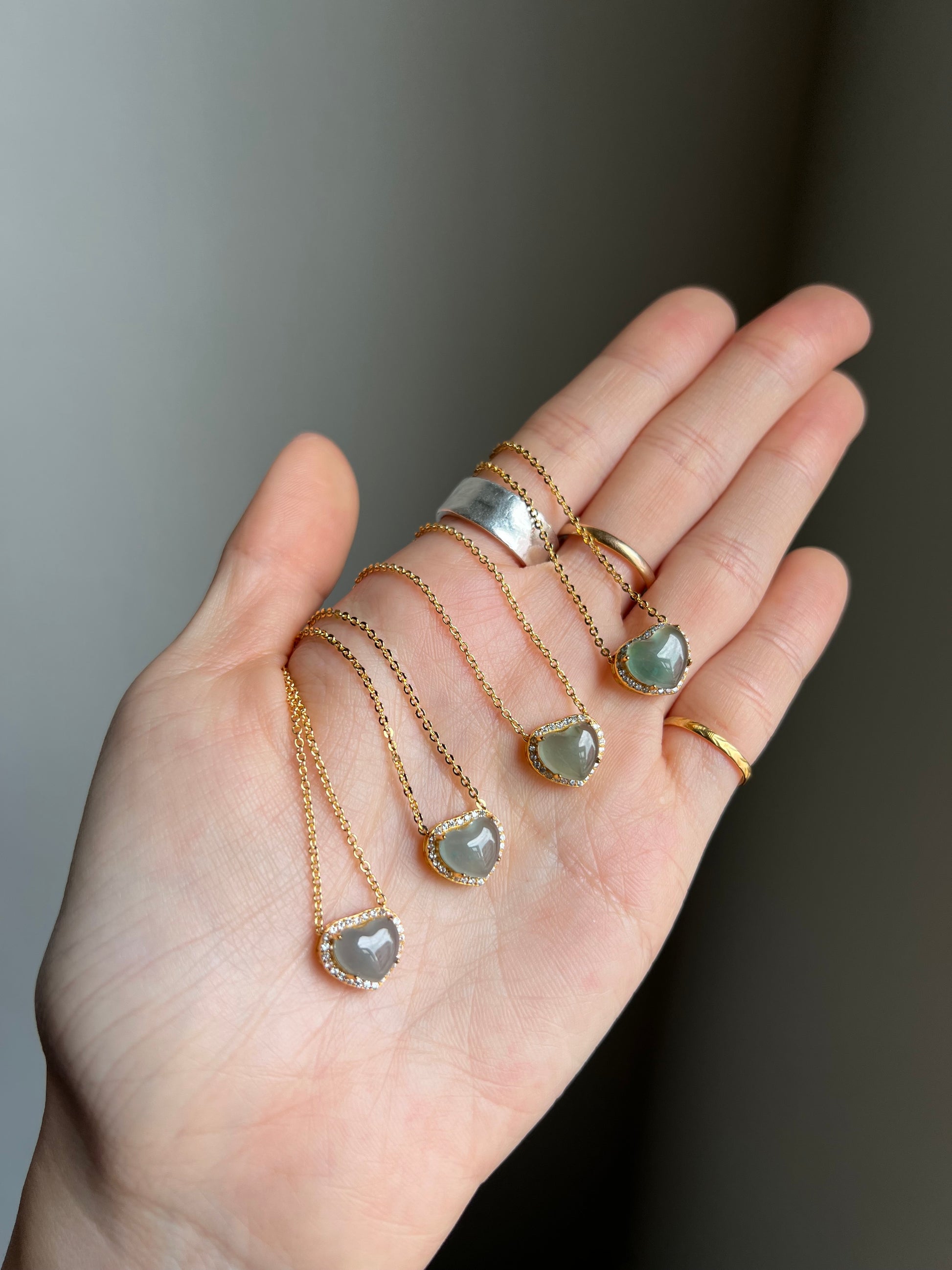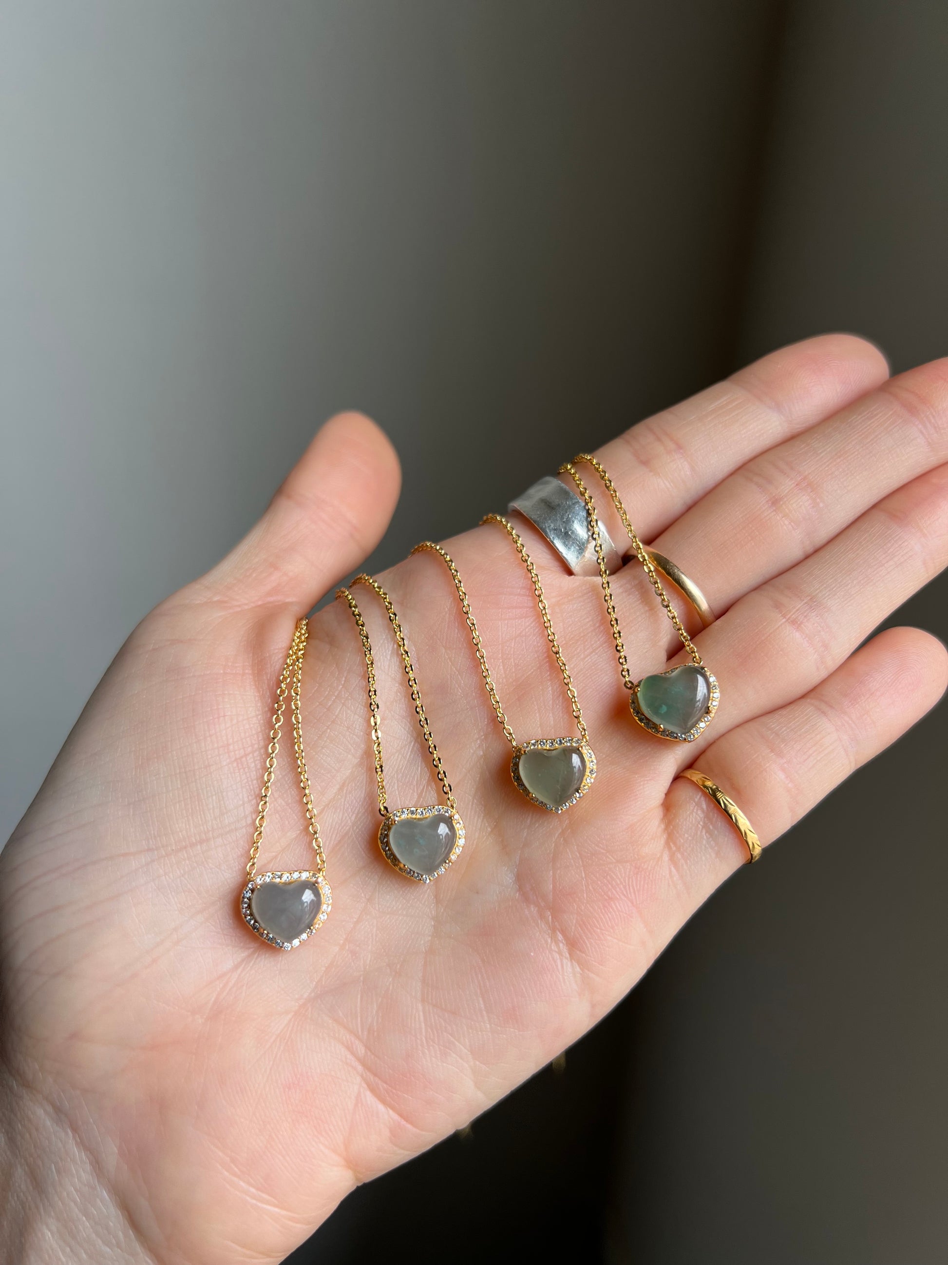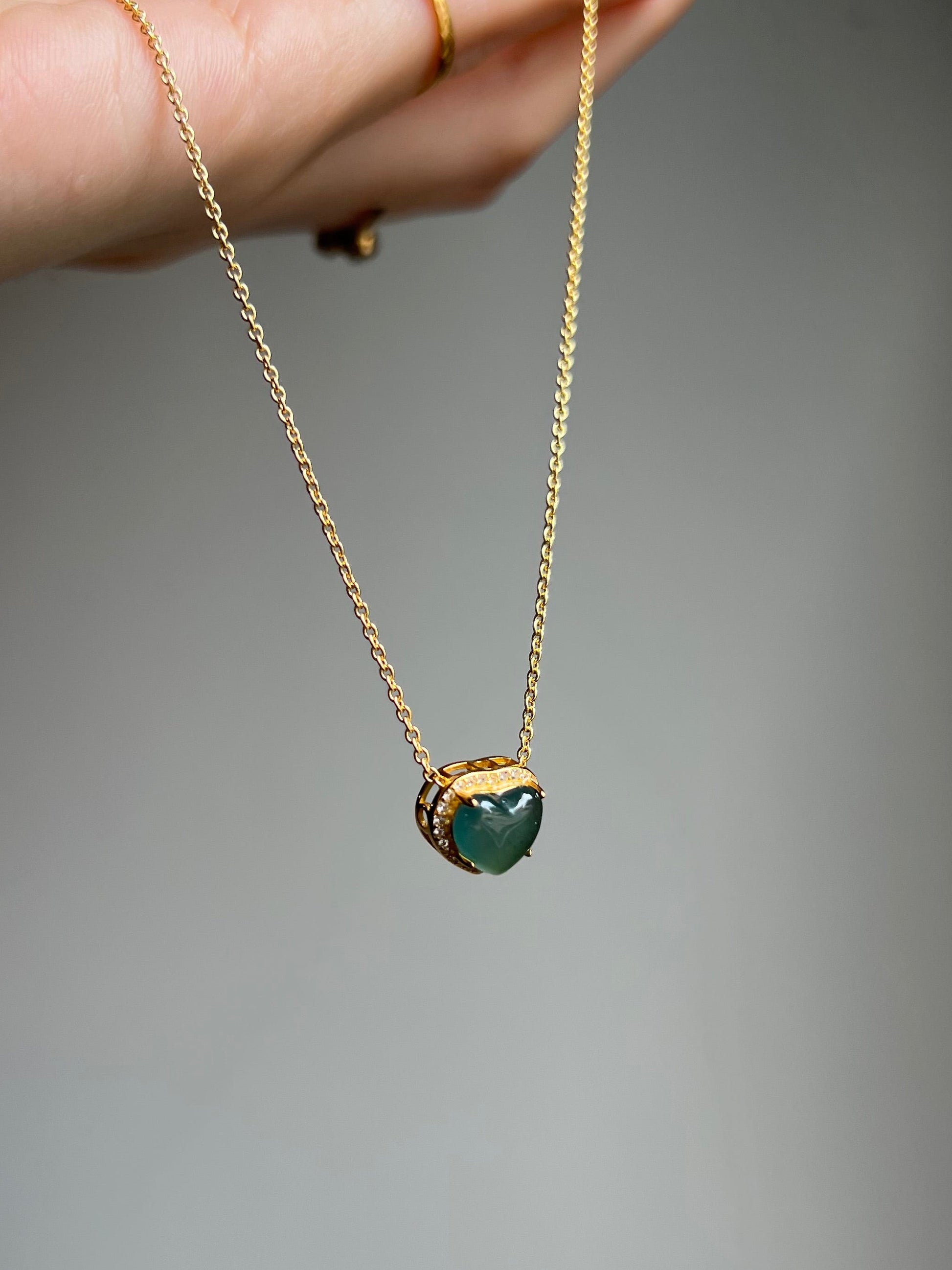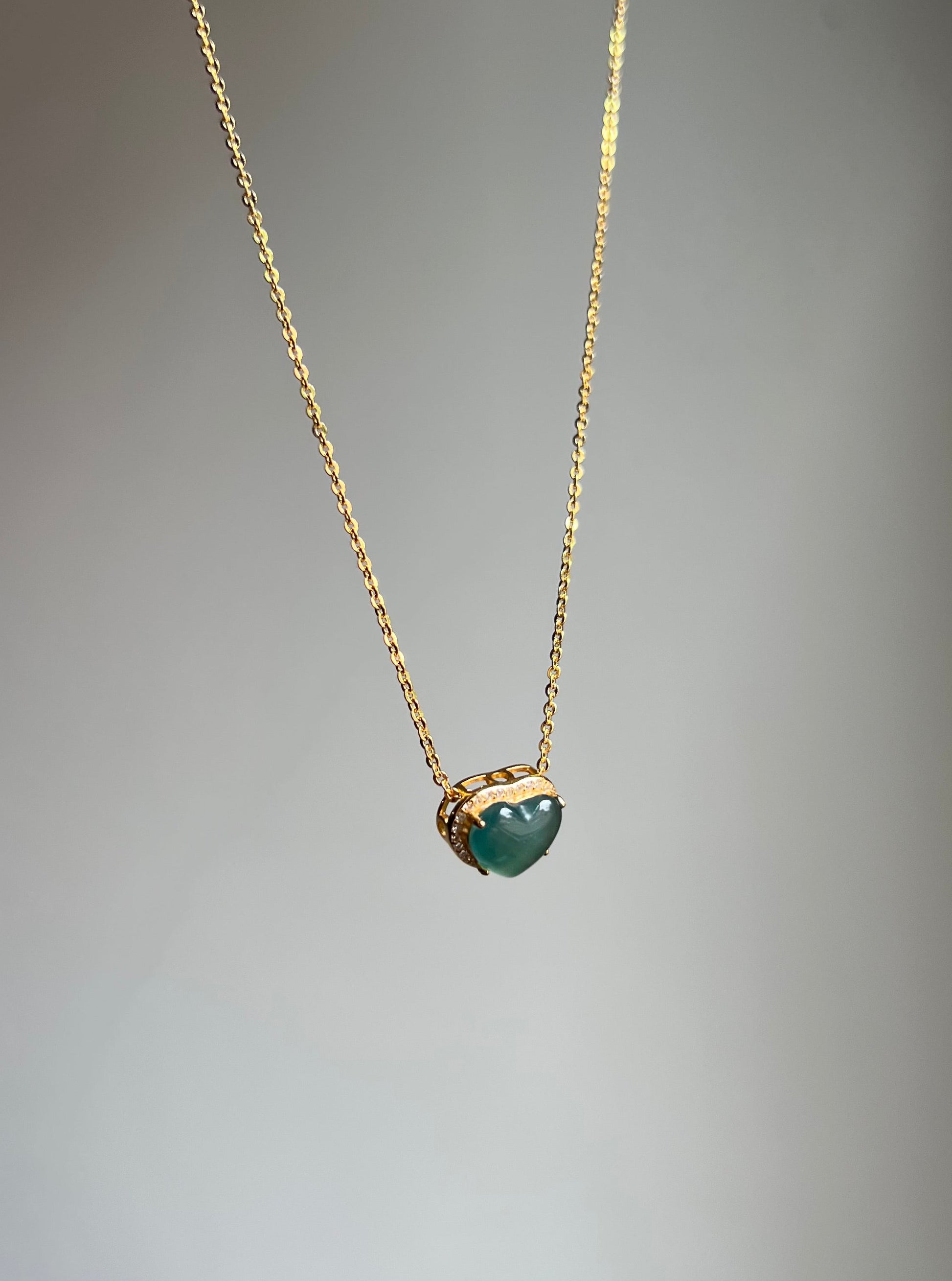 "amore" blue water jadeite mini heart necklace
