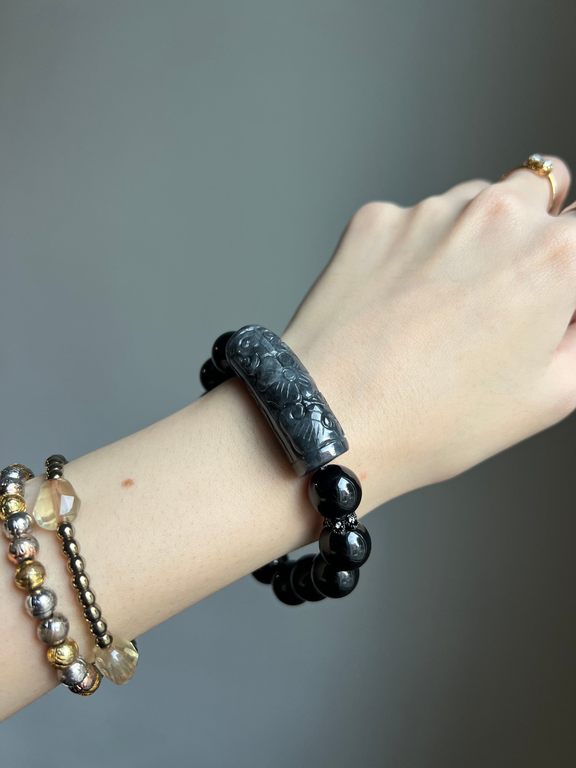"the night's calling" black (wuji) jadeite bracelet